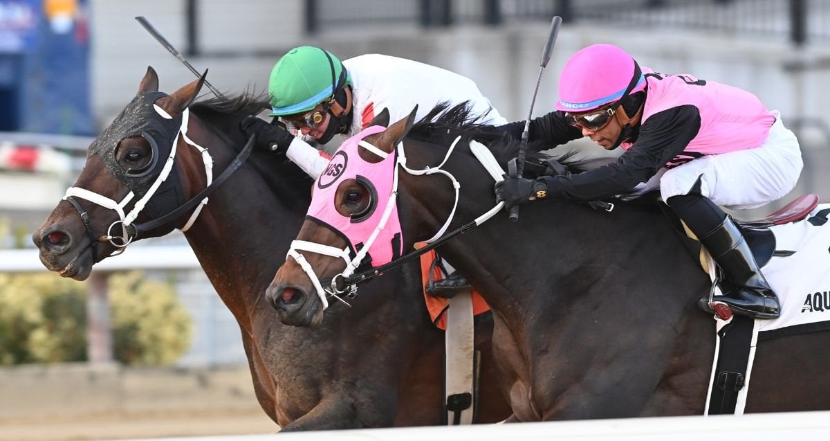 Bishops Bay, carrying a co-field high 125 pounds, needed every bit of the stretch run to put away the stubborn sophomore Mika and keep a perfect record at the Big A intact following Grade 3 scores over course and distance in the Westchester in May and the Forty Niner last out on November 2.